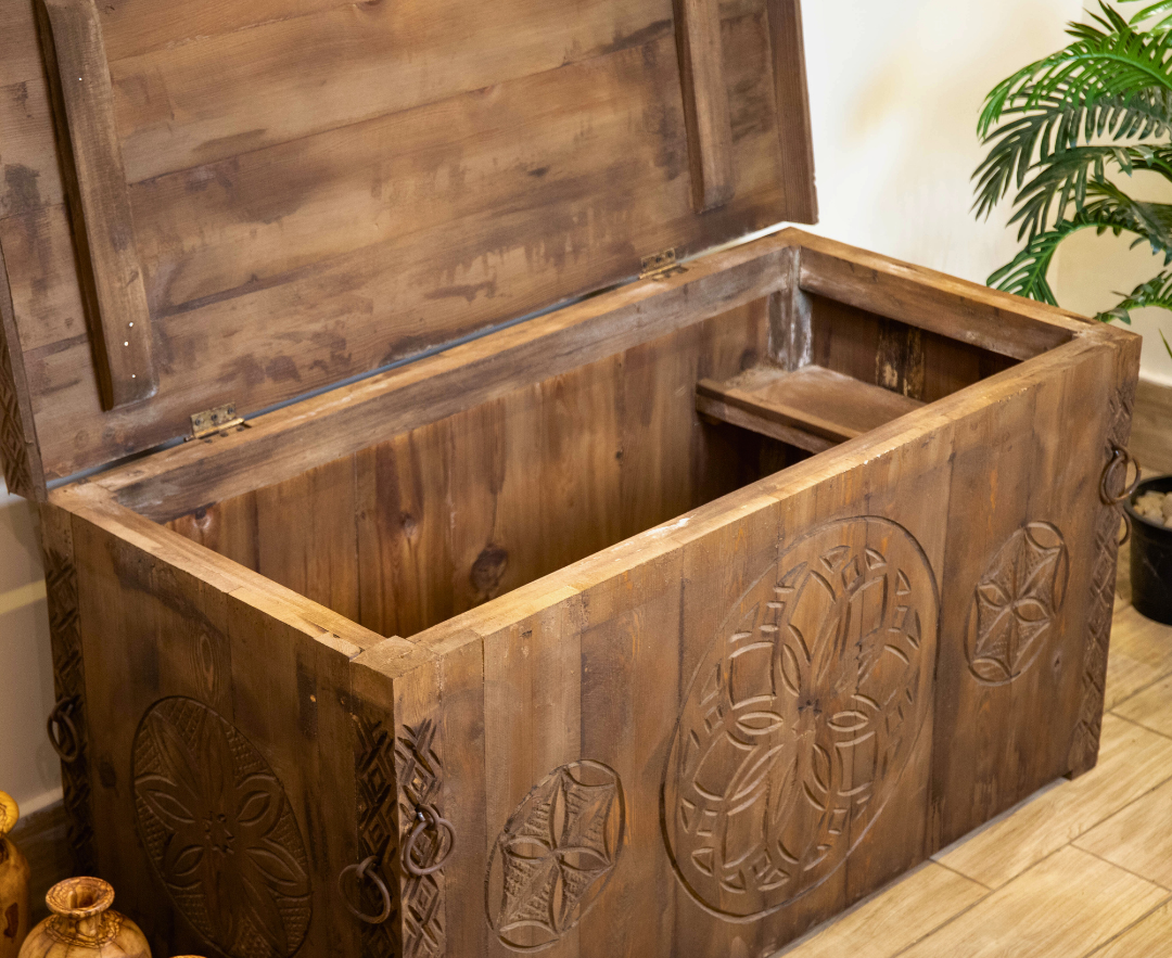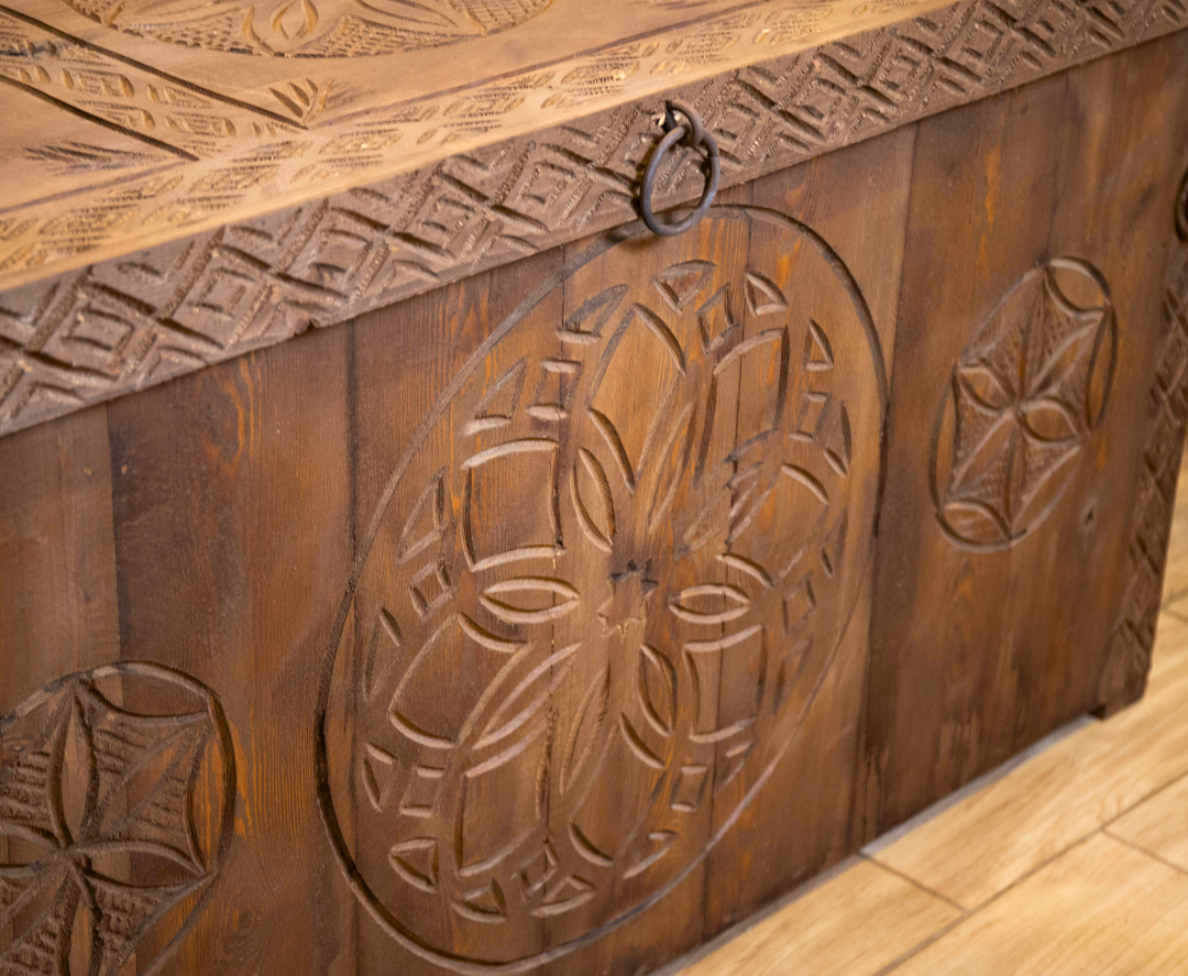 Wooden box with carving and antique look