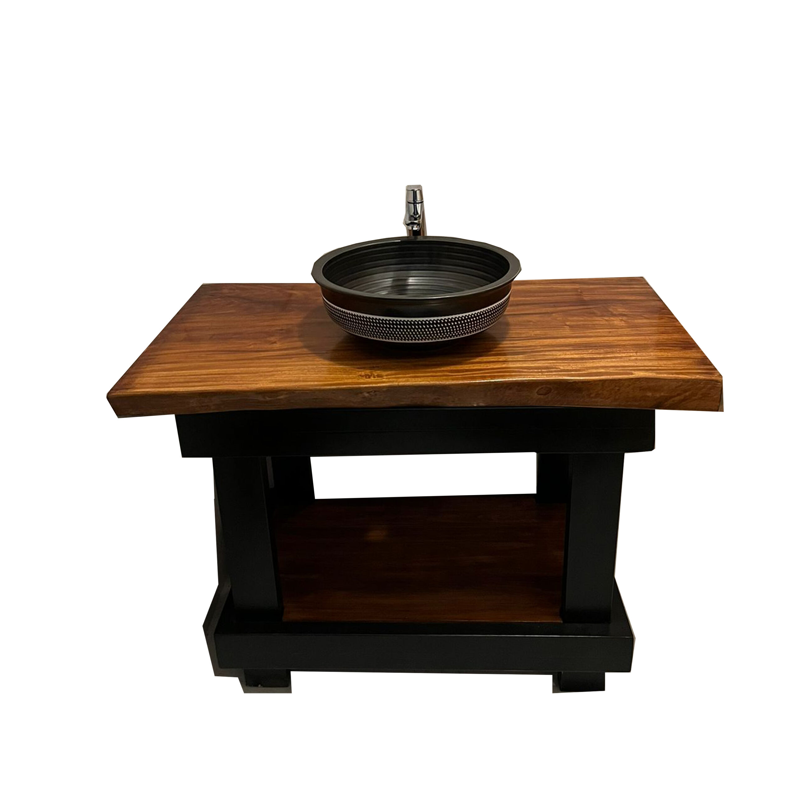 Bath Unit of Natural live edge wood with steel base