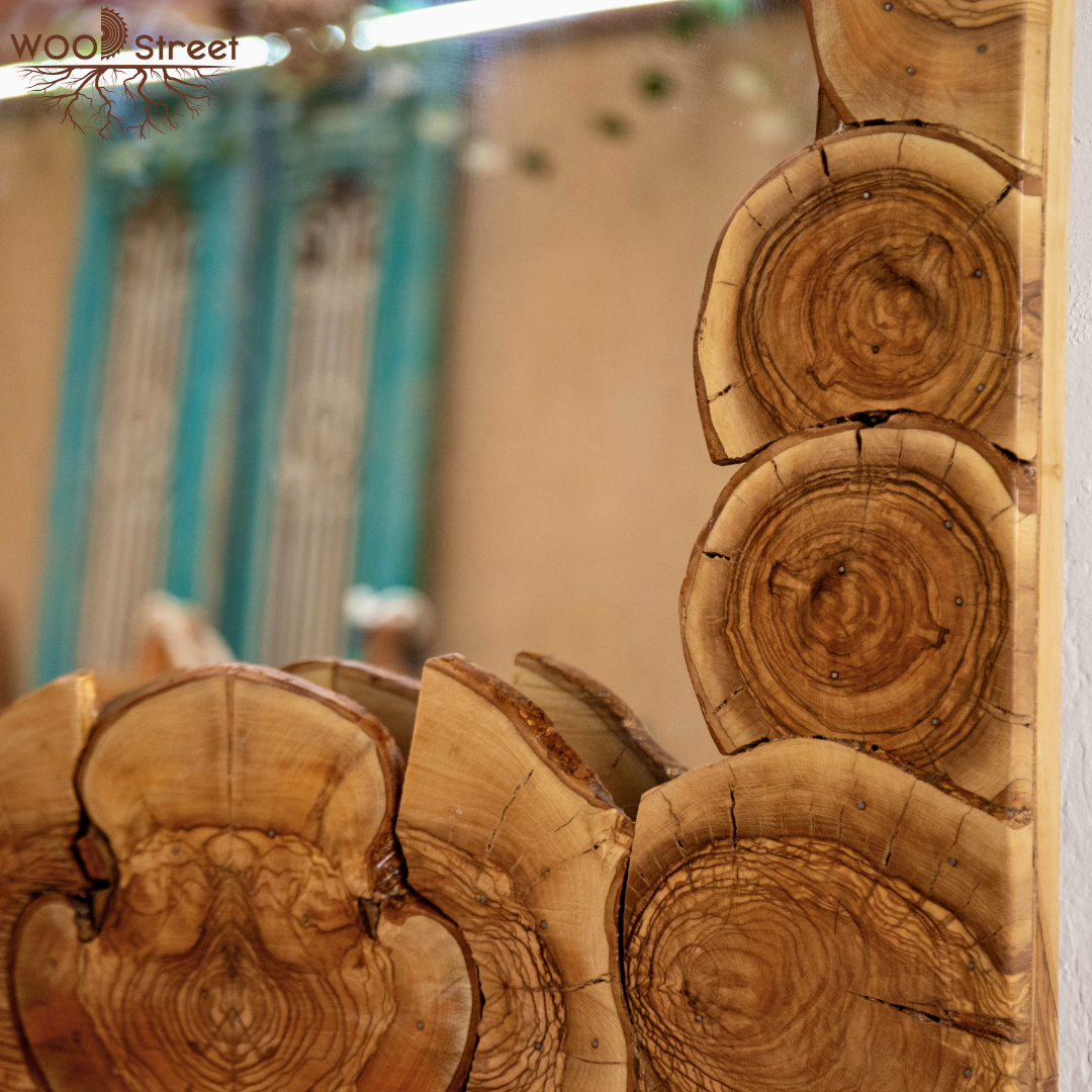 Mirror with natural olive wood frame