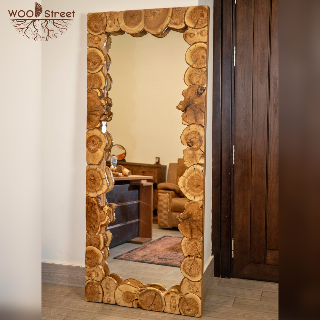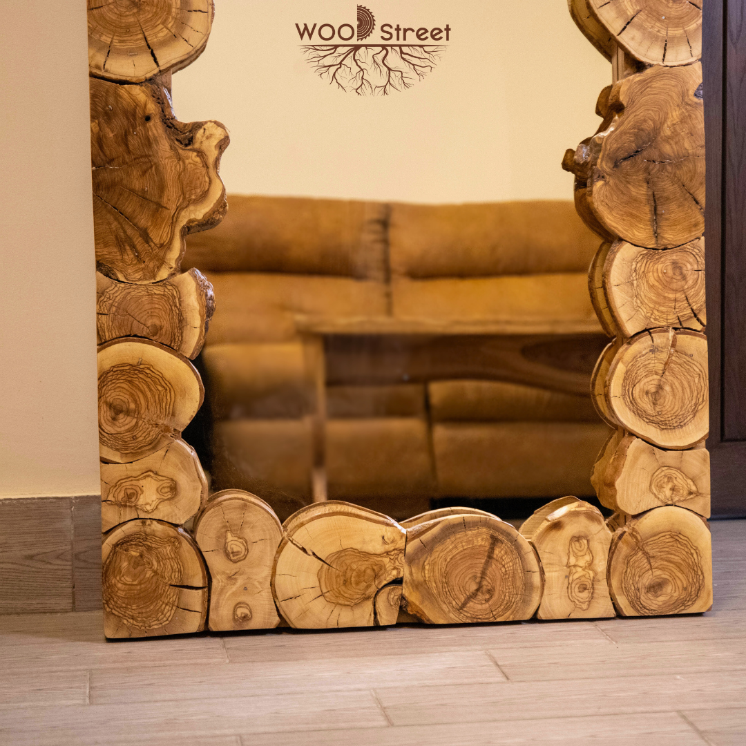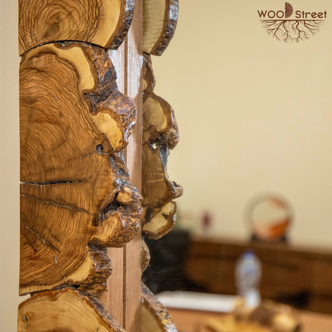 Mirror with natural olive wood frame.