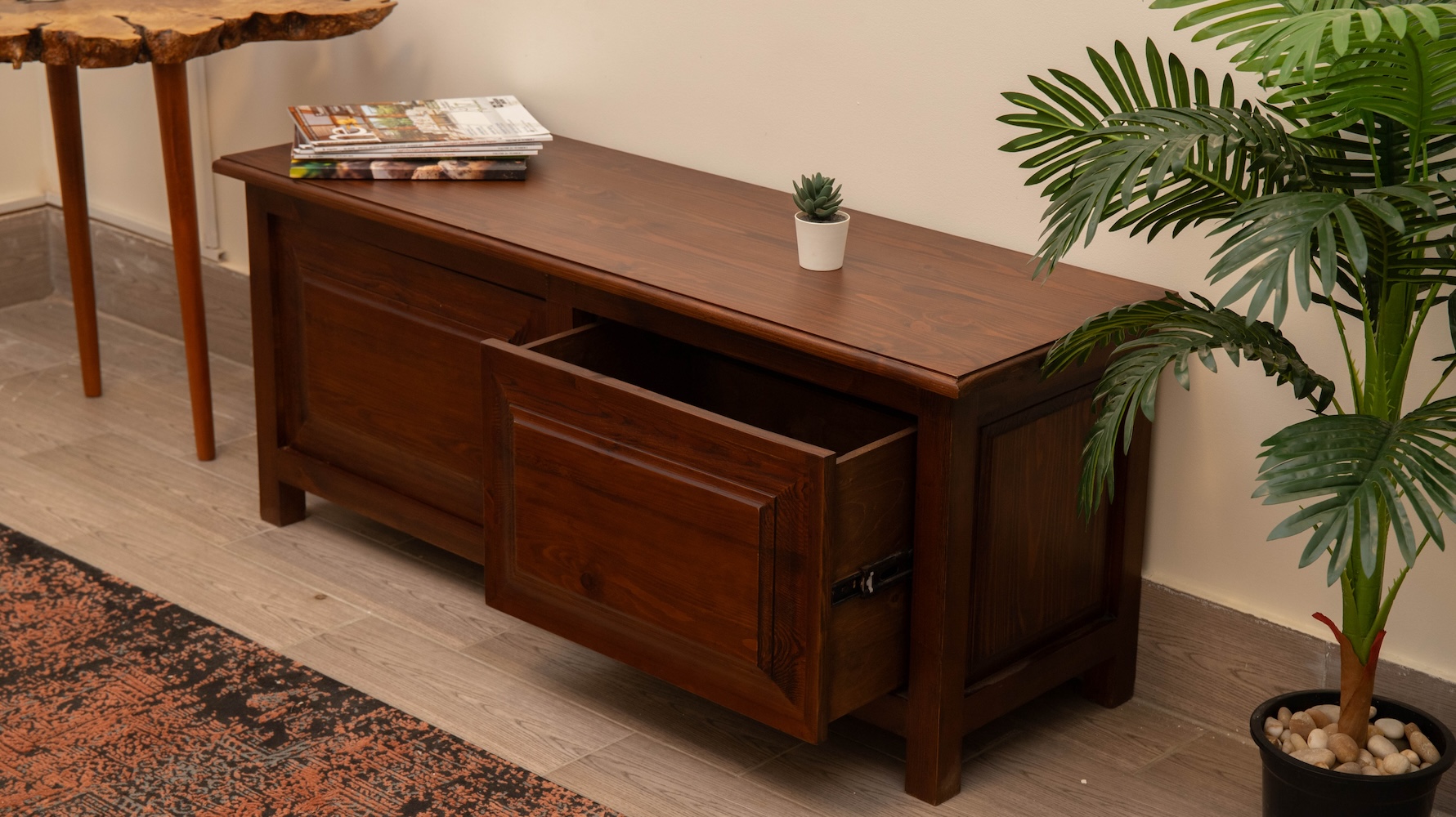 Natural Wood TV Unit with touch drawers