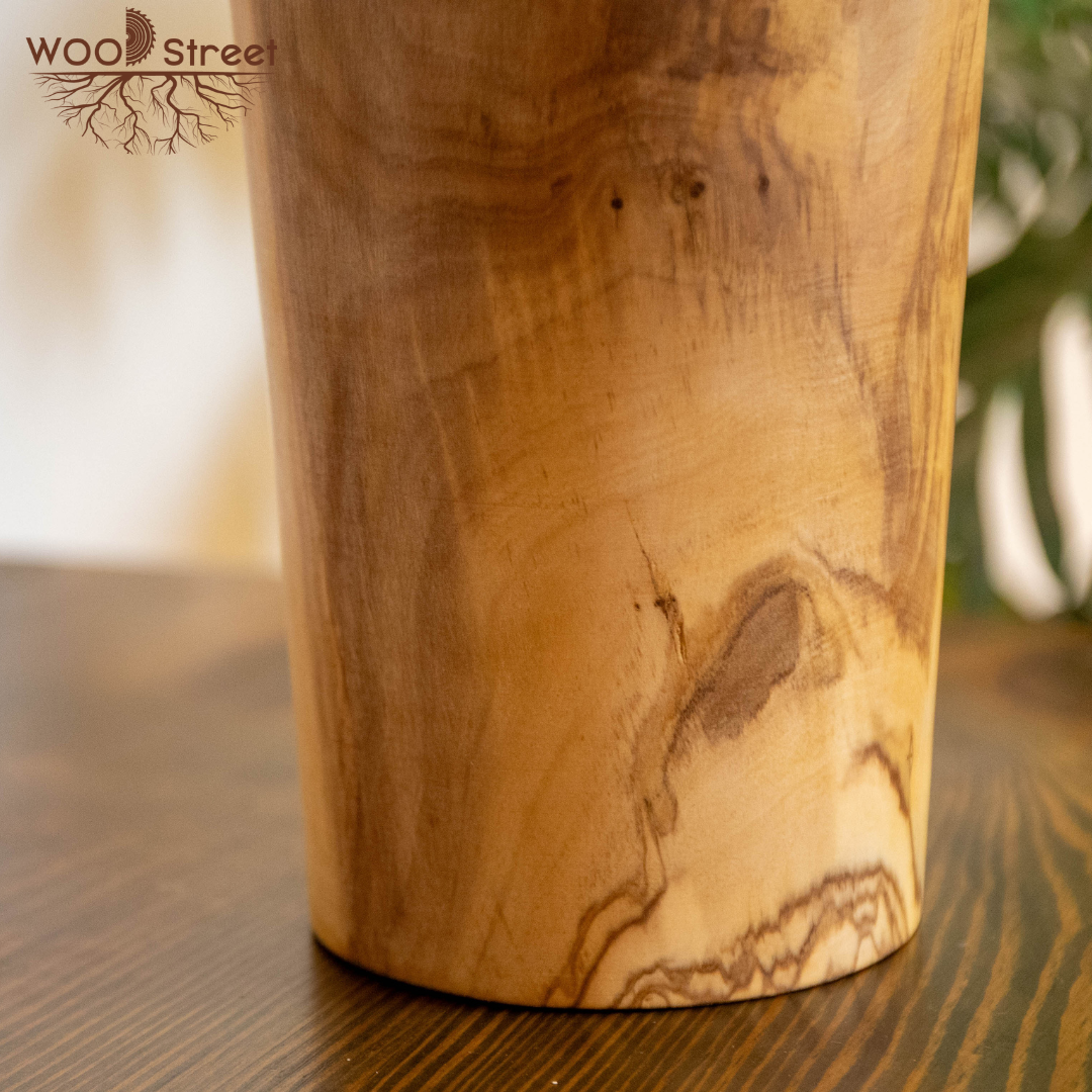 Hand carved natural olive wood vase.